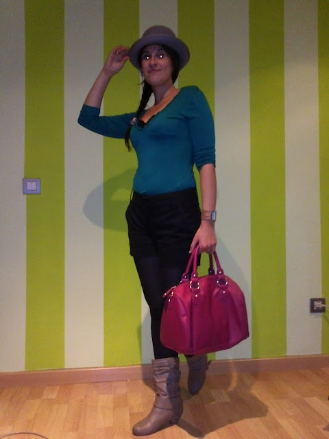 El bolso es de Primark,las botas de Maripaz de la temporada pasada , el reloj de Tous y el sombrero de H&M